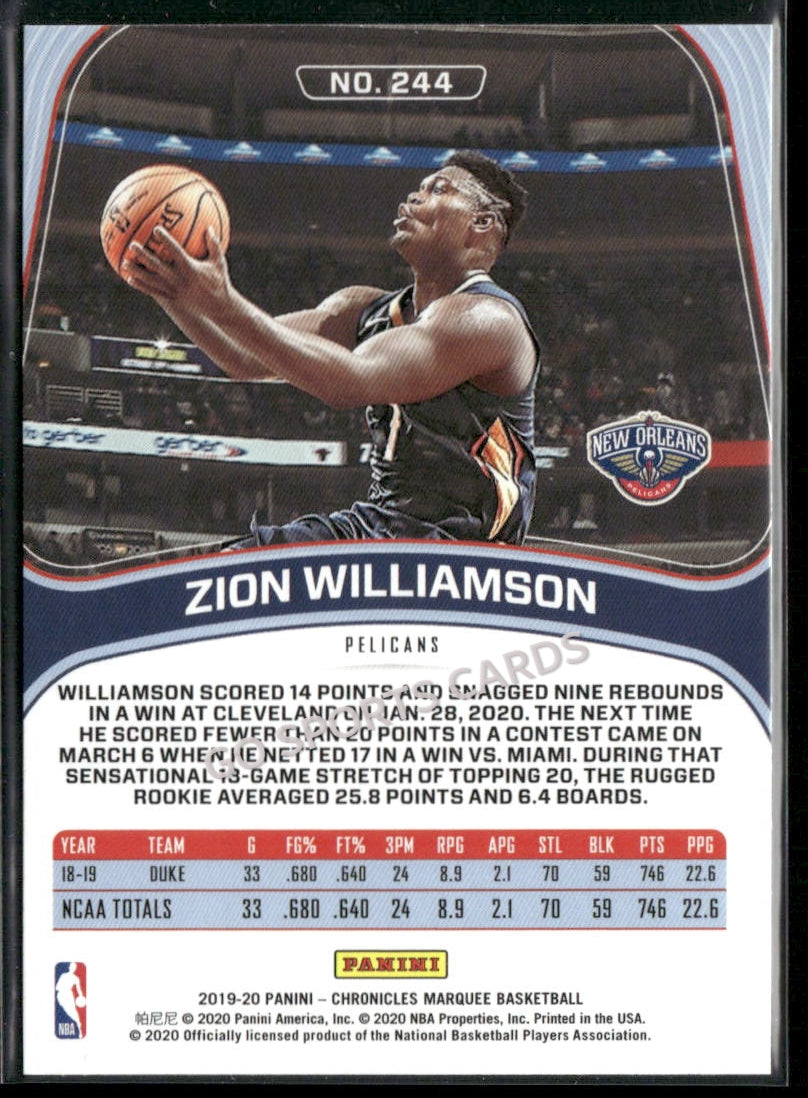 2019-20 Panini Chronicles Zion Williamson Marquee Pink #244