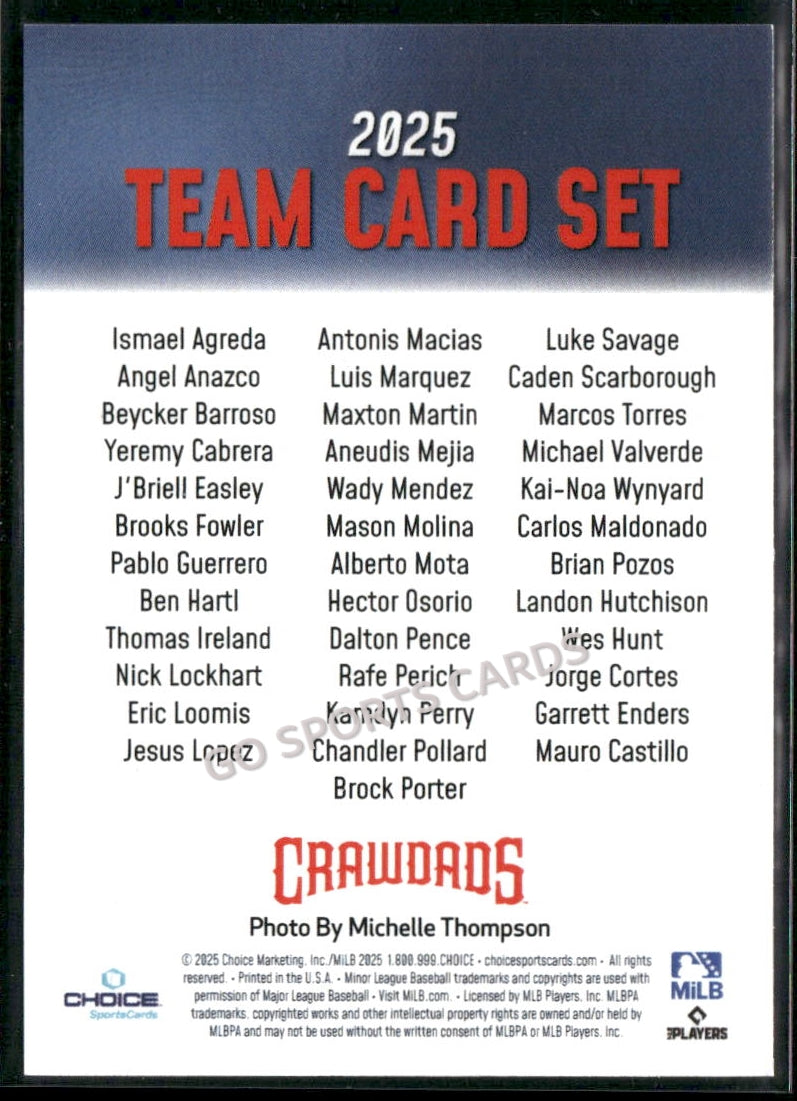 2025 Hickory Crawdads 1st Header Checklist