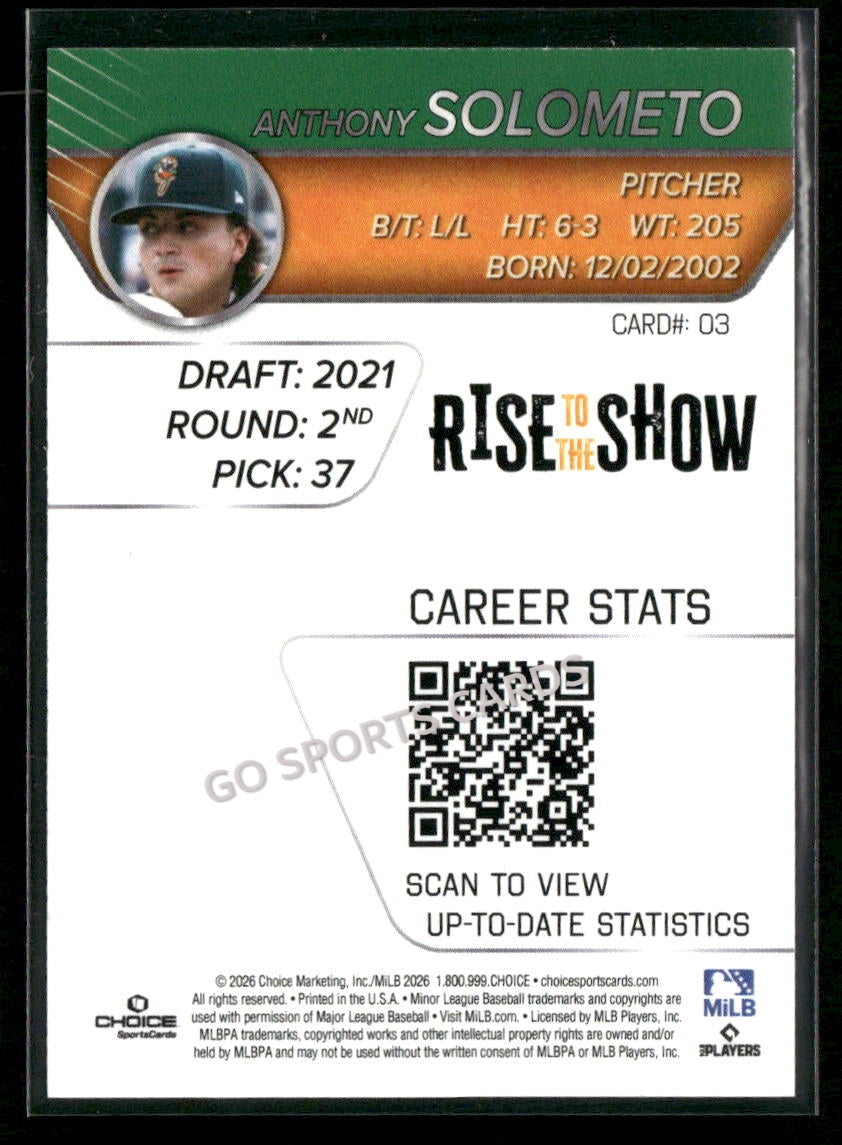 2026 Greensboro Grasshoppers Rise Show Top Prospects GOLD /100 Anthony Solometo