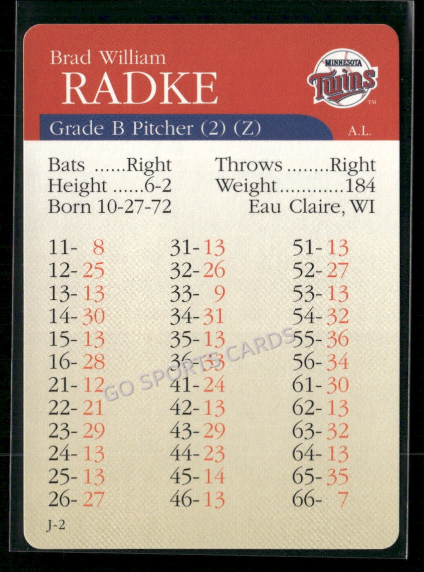 2000 APBA MLB Premiere Edition Brad Radke