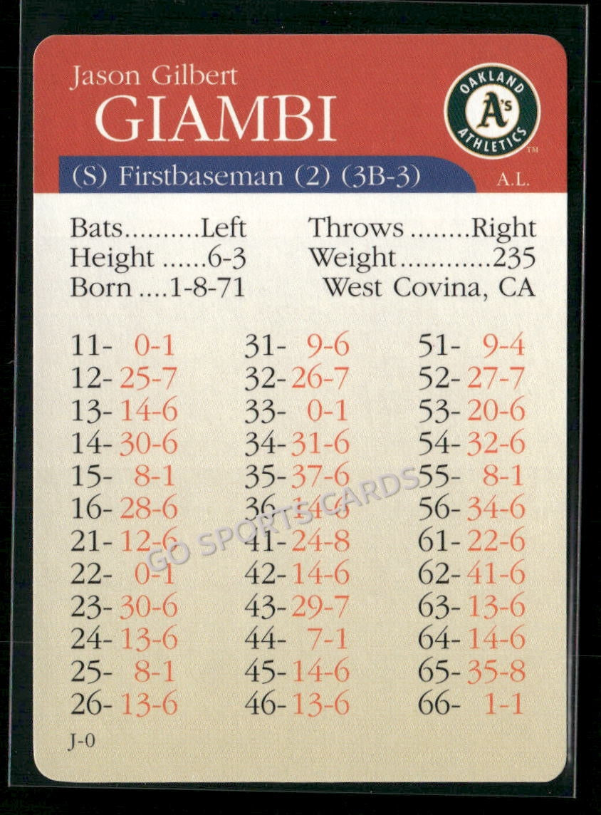 - APBA 2000 MLB Premiere Edition Game Card - Baseball Card