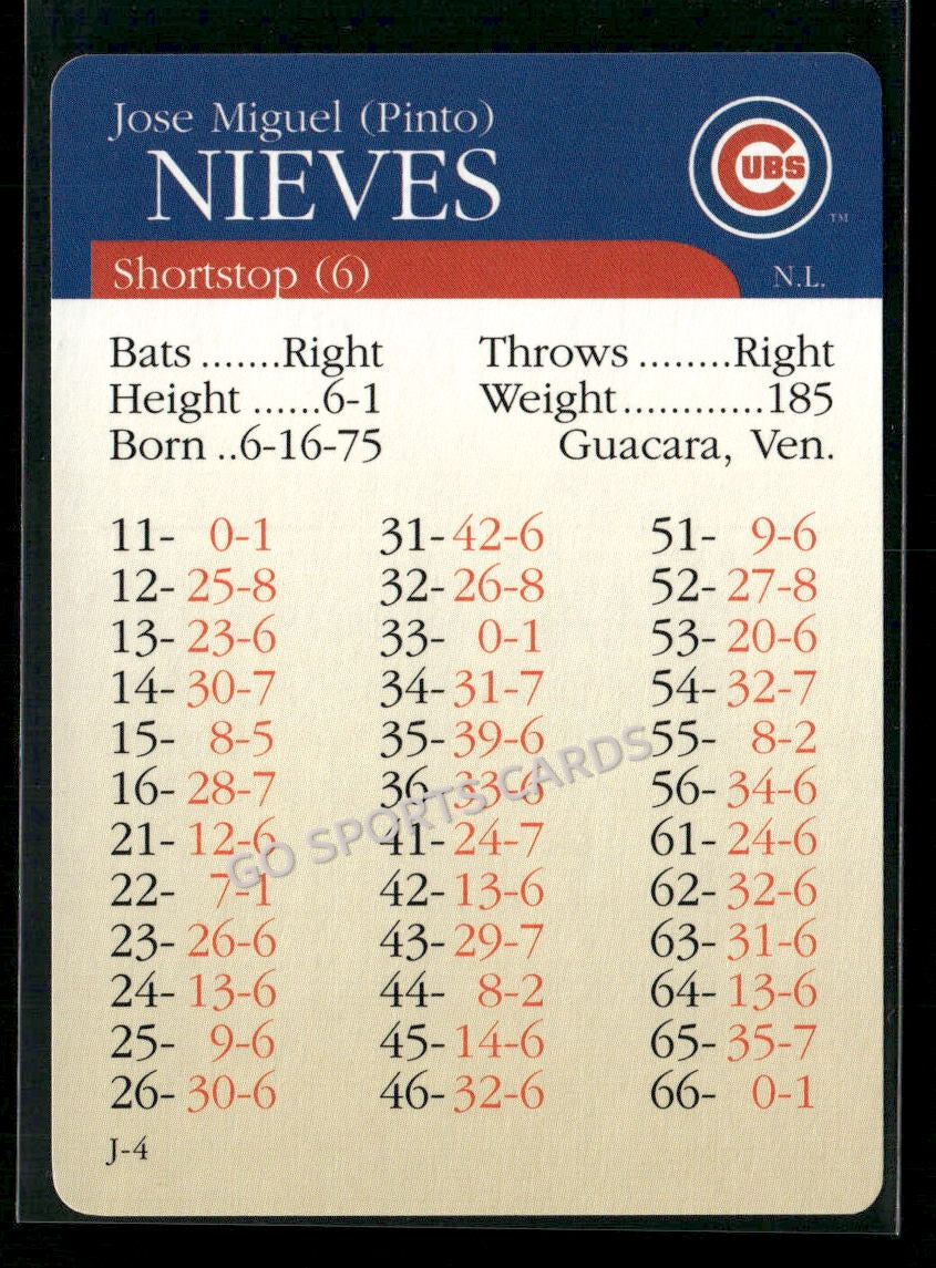 2000 APBA MLB Premiere Edition Jose Miguel Nieves