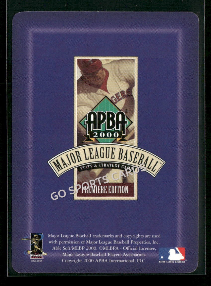 - APBA 2000 MLB Premiere Edition Game Card - Baseball Card
