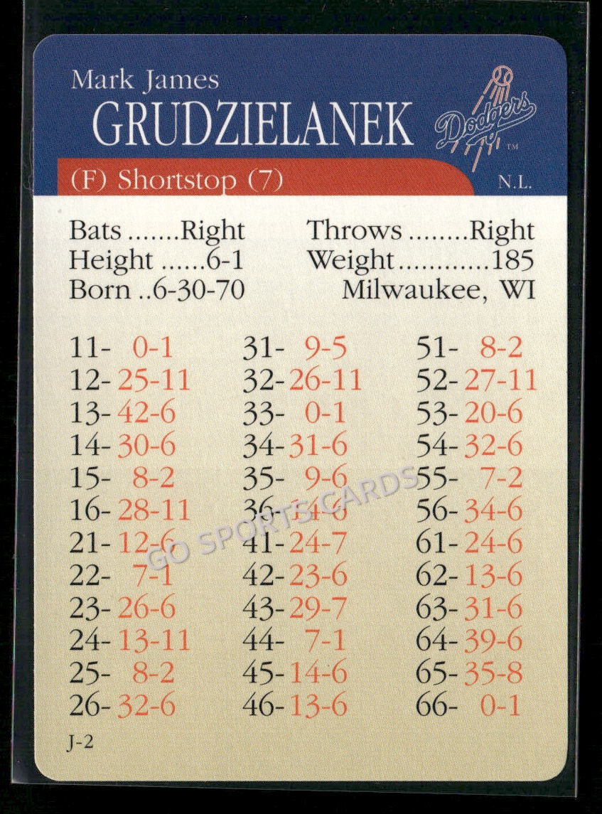 2000 APBA MLB Premiere Edition Mark James Grudzielanek
