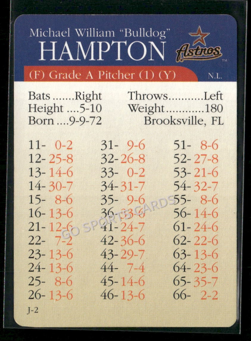 • APBA 2000 MLB Premiere Edition Game Card - Baseball Card