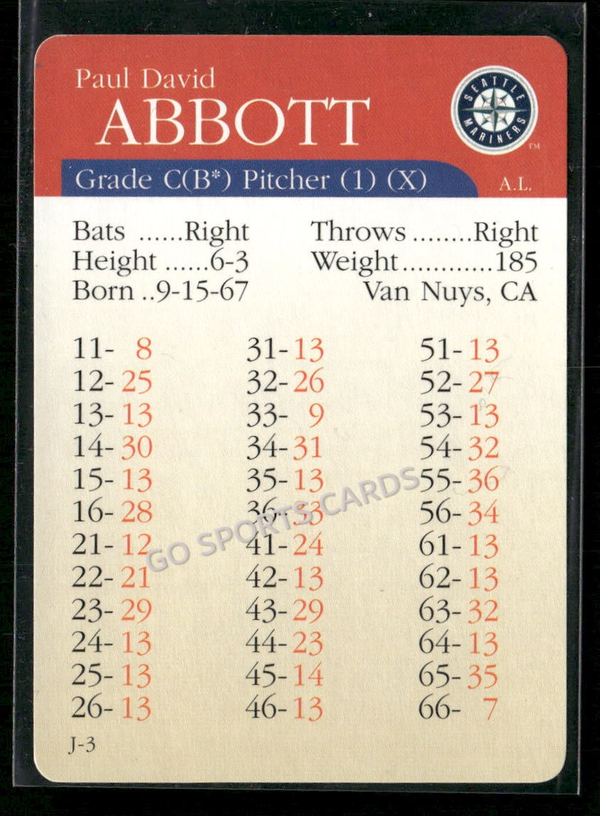 • APBA 2000 MLB Premiere Edition Game Card - Baseball Card