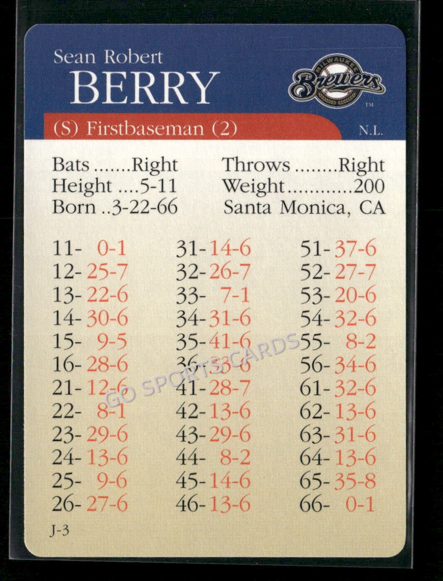 • APBA 2000 MLB Premiere Edition Game Card - Baseball Card