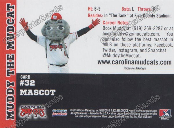 2016 Carolina MudCats Muddy the Mudcat Mascot