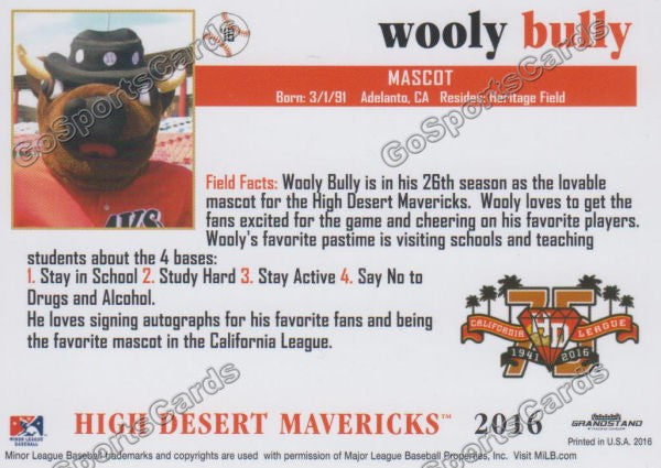 2016 High Desert Mavericks Wooly Bully Mascot