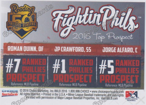 2016 Reading Fightin Phils Top Prospect 11 JP Crawford Jorge Alfaro Roman Quinn