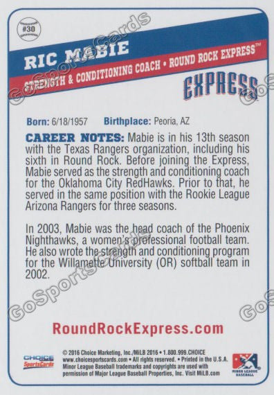 2016 Round Rock Express Ric Mabie