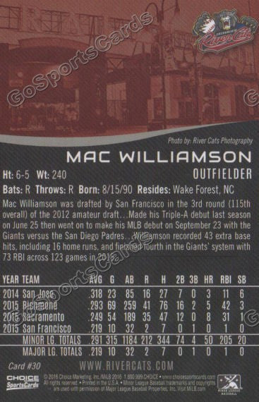 2016 Sacramento River Cats Mac Williamson