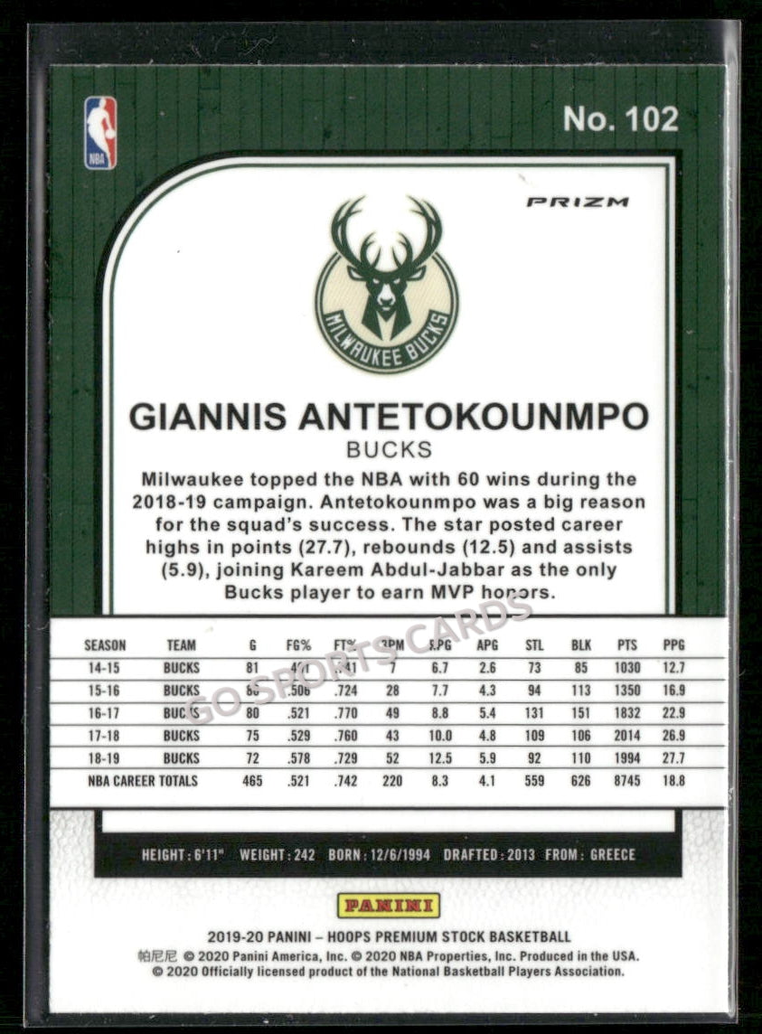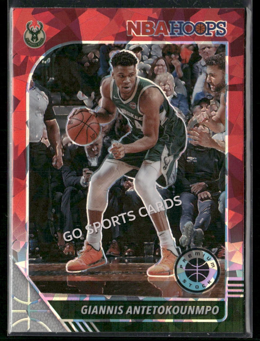 2019-20 Panini Hoops Premium Stock Giannis Antetokounmpo Red Cracked Ice #102