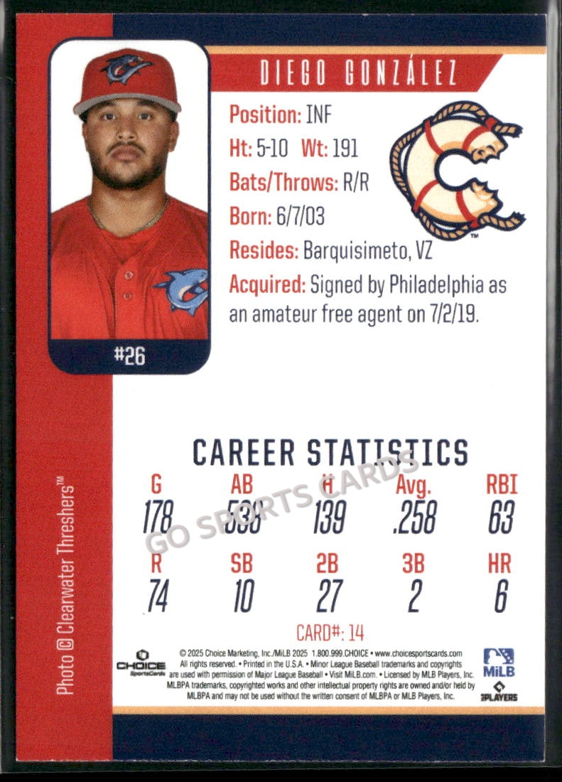 2025 Clearwater Threshers Diego Gonzalez
