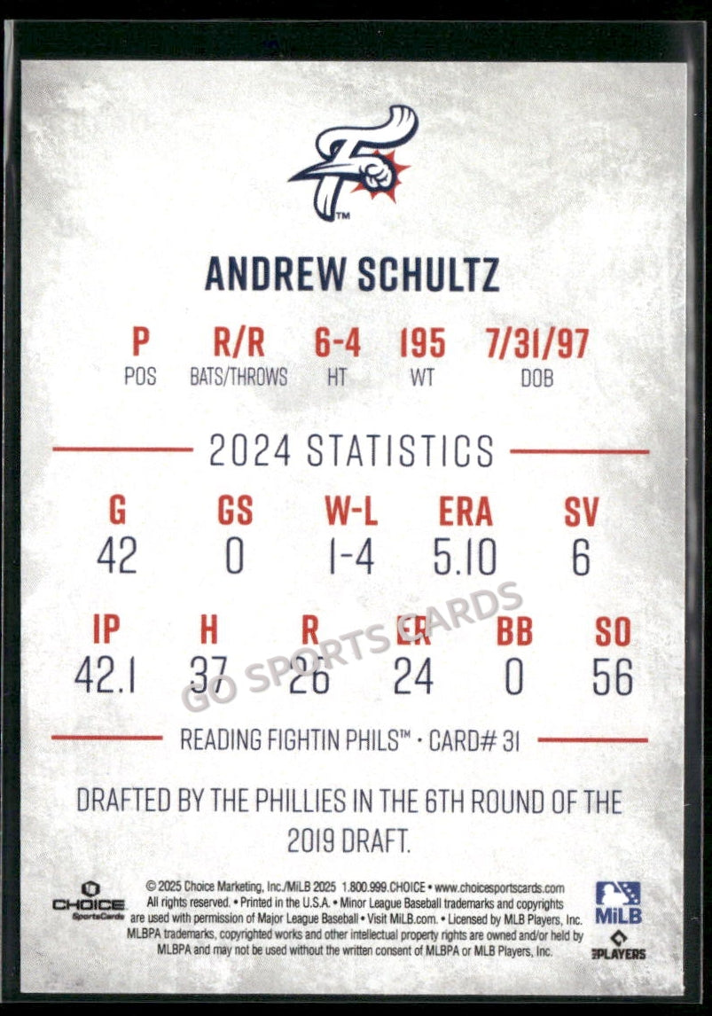 2025 Reading Fightin Phils 1st Andrew Schultz