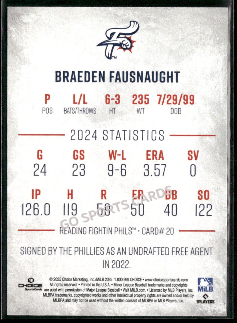 2025 Reading Fightin Phils 1st Braeden Fausnaught