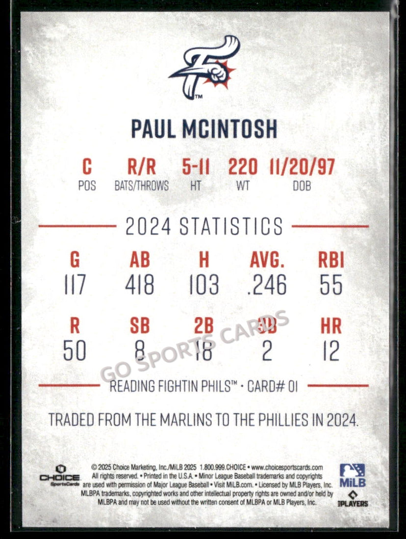 2025 Reading Fightin Phils 1st Paul McIntosh