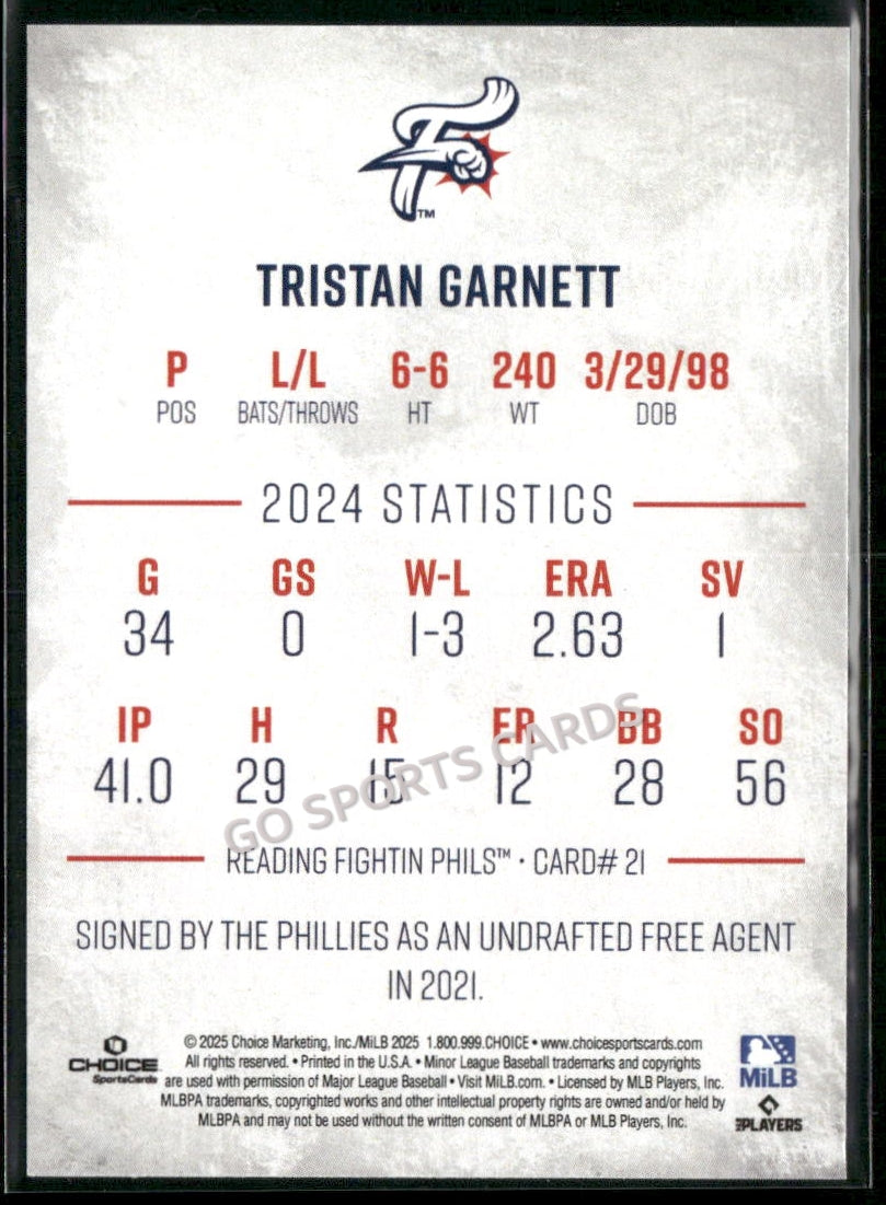 2025 Reading Fightin Phils 1st Tristan Garnett