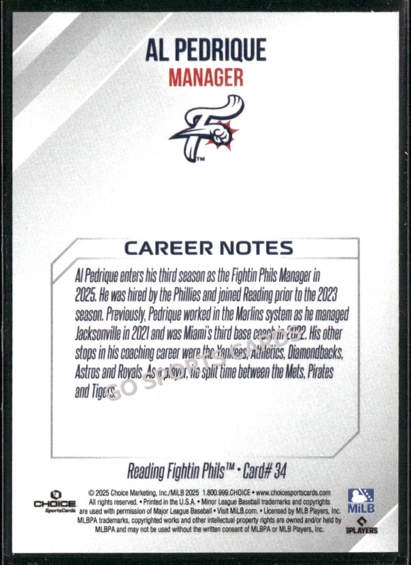 2025 Reading Fightin Phils 2nd Al Pedrique