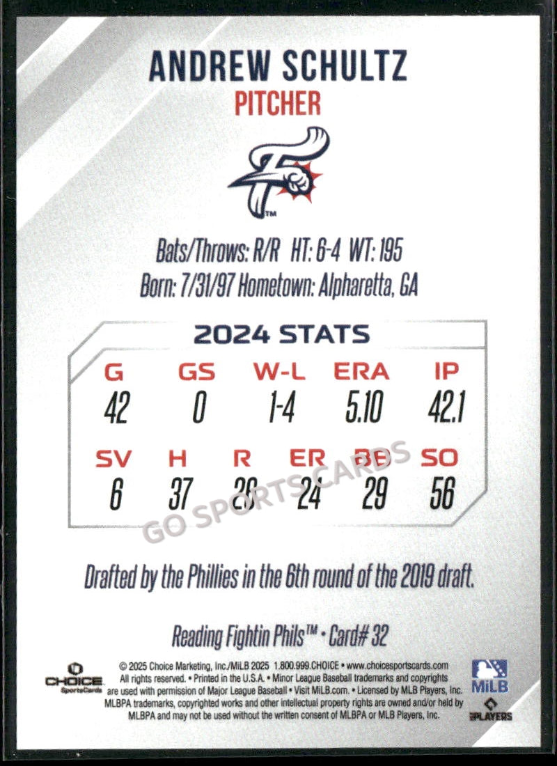 2025 Reading Fightin Phils 2nd Andrew Schultz