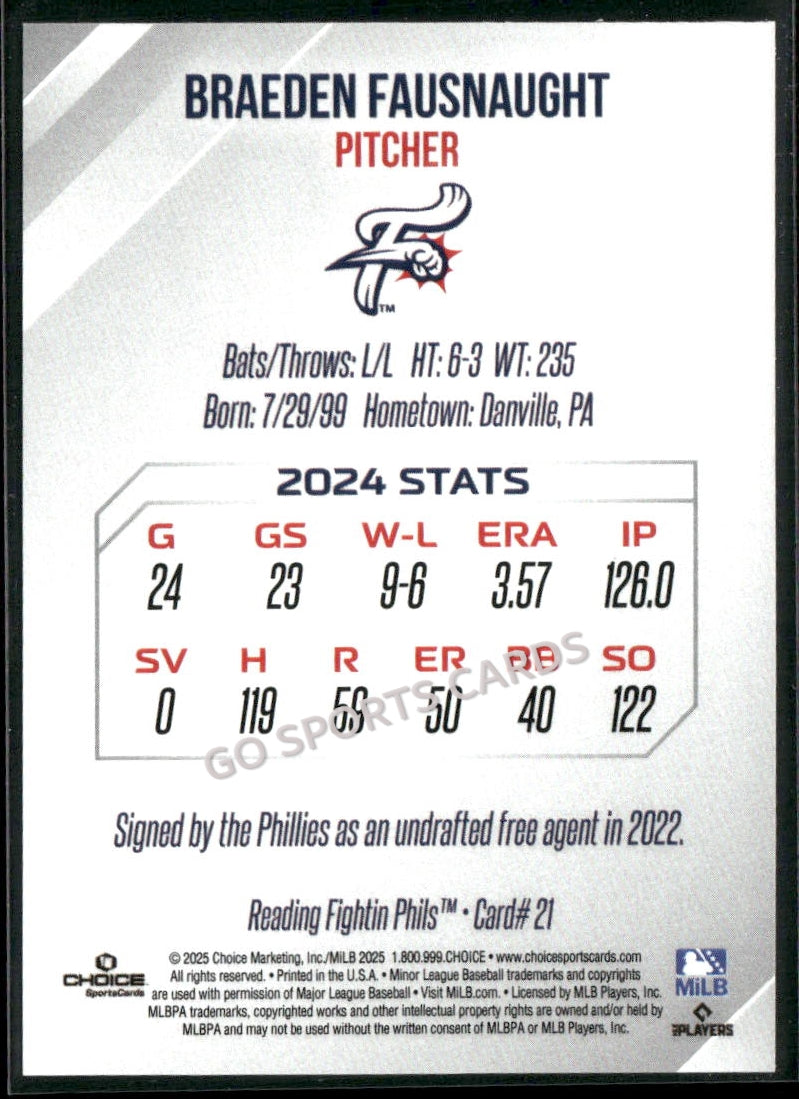 2025 Reading Fightin Phils 2nd Braeden Fausnaught
