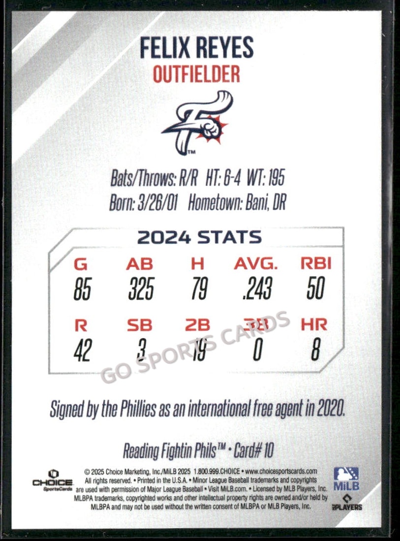 2025 Reading Fightin Phils 2nd Felix Reyes
