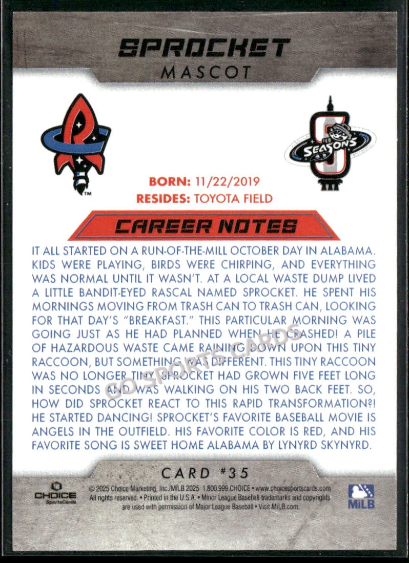 2025 Rocket City Trash Pandas Sprocket Mascot