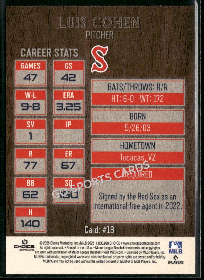 2025 Salem Red Sox Luis Cohen